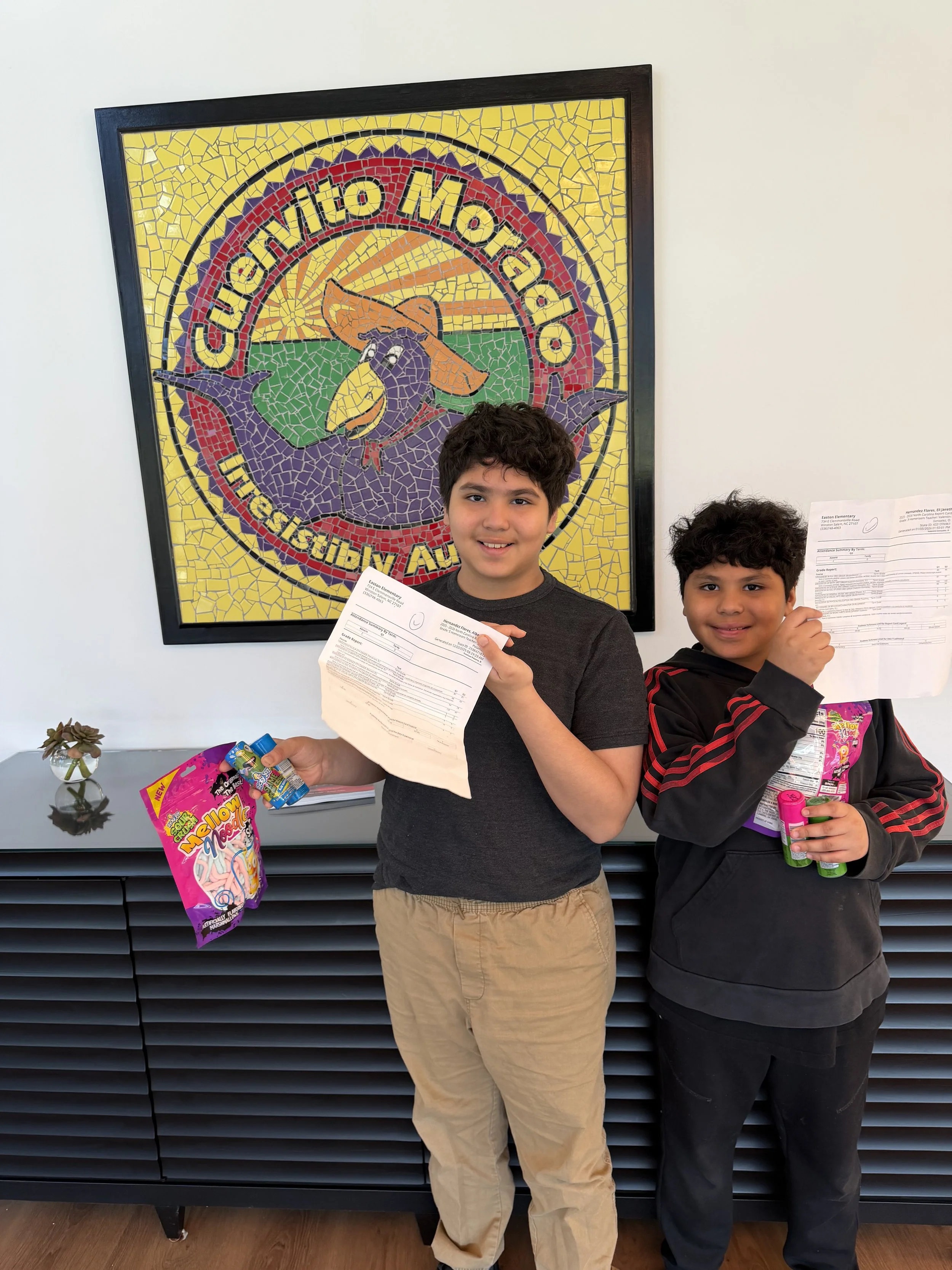 Cuervito Cards is a school report card incentive program for the little crows whose parents work at Purple Crow. Today, a few students brought their report cards and got their treats. Look at those smiles!